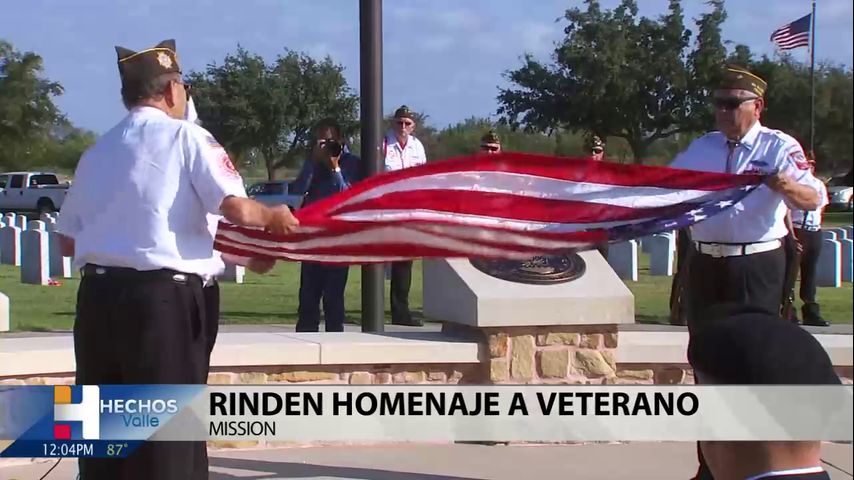 Los funcionarios de la ciudad de Misssion, veteranos y la familia honran la vida de un veterano del valle con un servicio especial de entierro conmemorativo en el cementerio de veteranos del estado en el valle de Río Grande