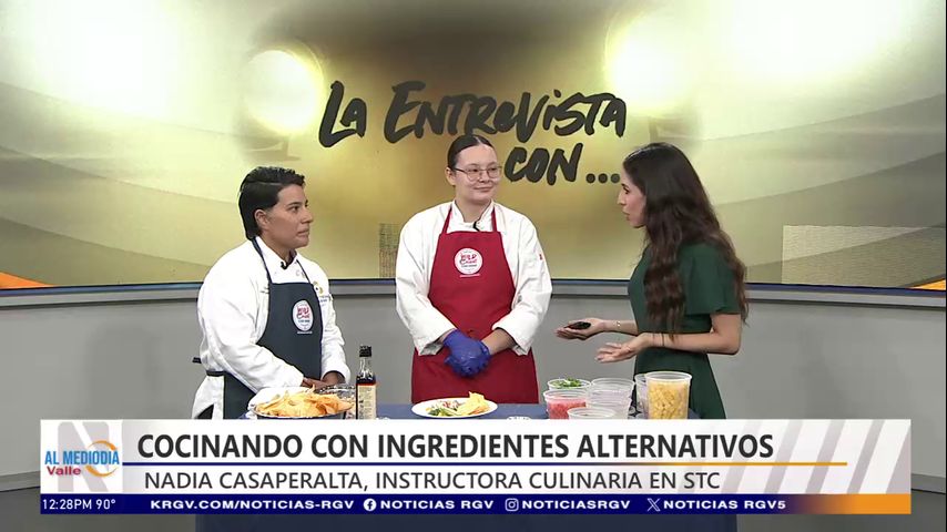 Nadia Casaperalta, instructora culinaria en South Texas College, presenta una receta culinaria elaborada con ingredientes alternativos.