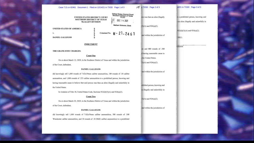 Daniel Gallegos is accused of knowingly selling ammunition on at least five occasions from March through May 2020 to a person who was in the country illegally, according to the three-page indictment against him.