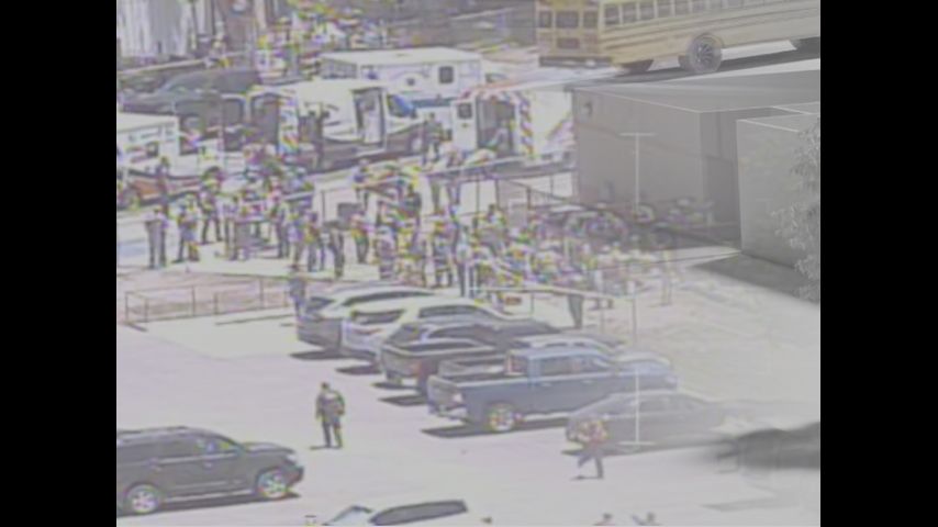 Multiple cameras worn by officers and one on the dashboard of a police car showed just two ambulances positioned outside the school when the shooter was killed. That was not nearly enough for the 10 or more gunshot victims then still alive, though additional ambulances began arriving 10 minutes later. Six students, including one who was seriously wounded, were taken to a hospital in a school bus with no trained medics on board, according to Texas EMS records.
