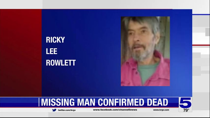 Harlingen police on Thursday confirmed that human remains found in the Arroyo last month have been identified as missing man 56-year-old Rickey Lee Rowlett.