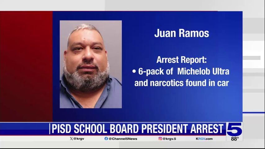 Progreso Independent School District School Board President Juan Jose Ramos Jr. was found with six bottles of Michelob Ultra and narcotics at the time of his arrest, according to an arrest report.