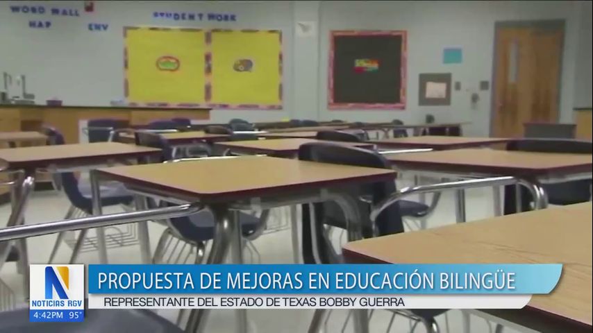 El diputado estatal de Mcallen, Bobby Guerra, está impulsando tres propuestas de ley: una requeriría que el estado vigile los programas bilingües para ver si cumplen con las metas establecidas de incentivar a los estudiantes para que sean maestros bilingües y actualizar las normas estatales, para que los programas bilingües reciban los fondos necesarios.