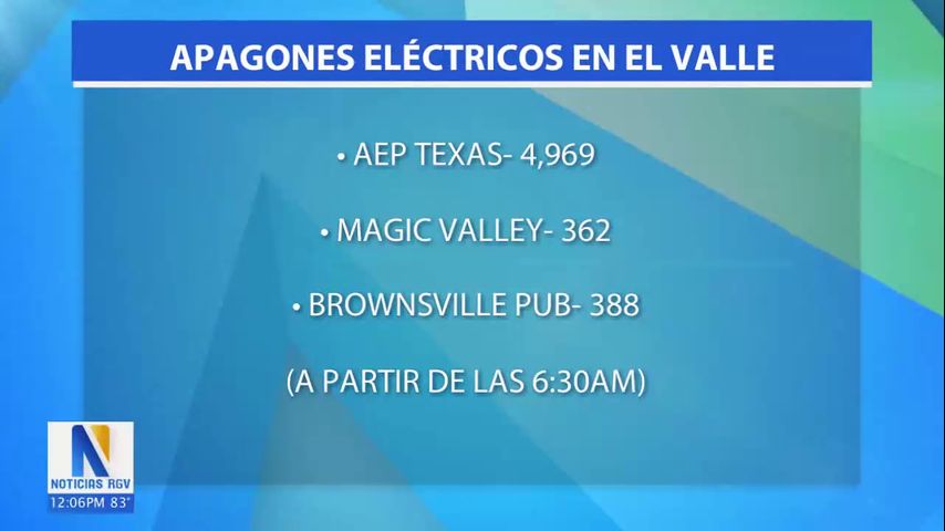 Magic Valley reporta aproximadamente 362 y Brownsville BPUB registra alrededor de 388 apagones.