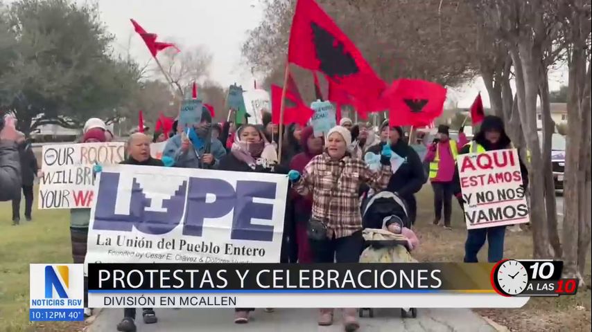 El frío y la lluvia no detuvieron a los manifestantes que junto a la Unión del Pueblo Entero (LUPE) marcharon desde el Parque Municipal de McAllen hasta Archer Park mostrando su rechazo al nuevo periodo presidencial de Donald Trump mostrando temor por las deportaciones masivas que pudieran ocurrir en este nuevo mandato.