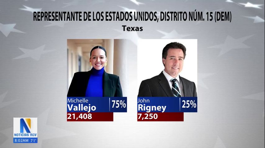 Y en el lado demócrata para la Cámara de Representantes del distrito 15. Parece que la nativa de valle, Michelle Vallejo, está ganando.
