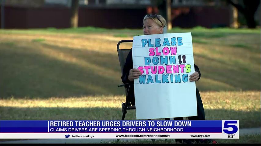 Leslie Lee Gomez says she spends every weekday morning holding a homemade sign reminding drivers in the Sharyland Plantation Community to drive slow while kids head to school.