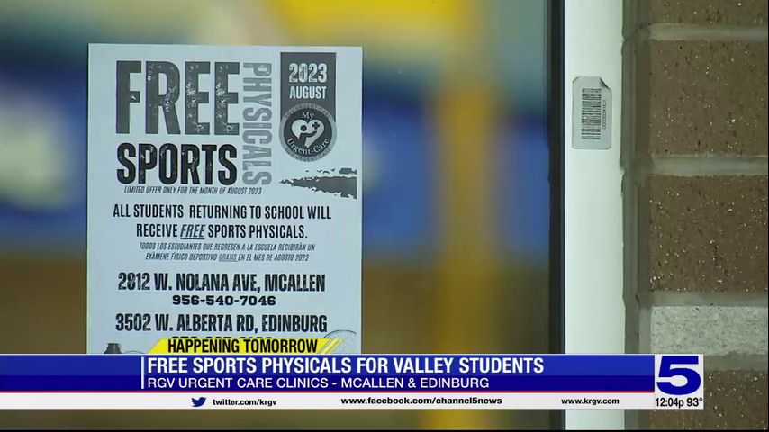 During the month of August, students from any school district can visit any of the two RGV Urgent Care Clinic locations in McAllen and Edinburg for a free sports physical.