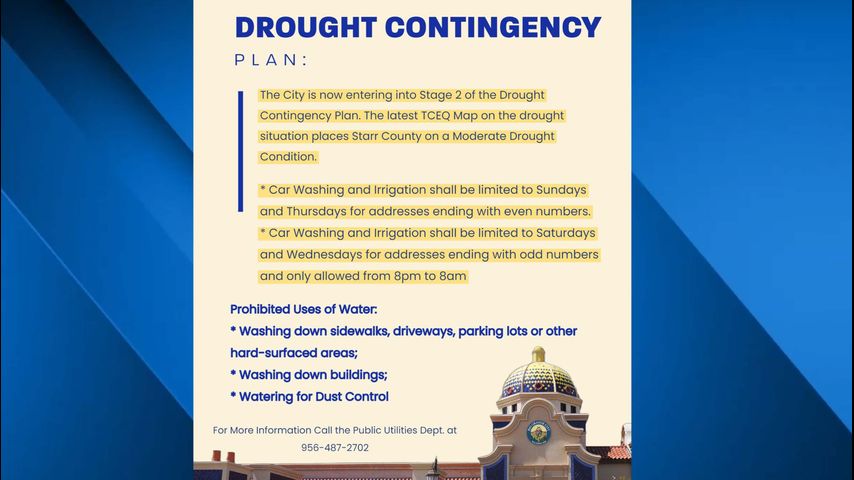 El lavado de autos y el riego estarán limitados para los residentes de Rio Grande City después de que la ciudad ingresó a la etapa 2 de su plan de contingencia por sequía.