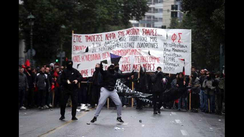 An earlier midday Athens march by about 700 people also degenerated into violence, with police firing tear gas at hooded youths who were throwing objects and smashing bus stops.