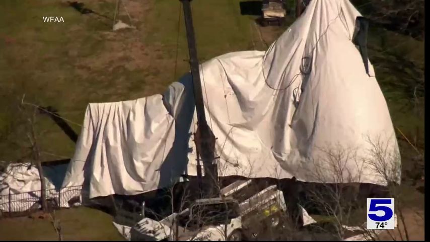 WFAA-TV, the ABC affiliate in Dallas, provided video to Channel 5 News that shows the aerostat crash-landed on a property surrounded by trees and power lines.