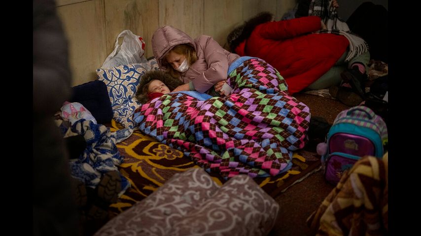 Fearing a Russian attack on the capital city, thousands of people went deep underground as night fell, jamming Kyiv's subway stations.
