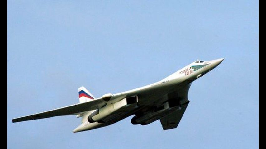 The Tu-160 is capable of carrying conventional or nuclear-tipped cruise missiles with a range of 5,500 kilometers (3,410 miles).