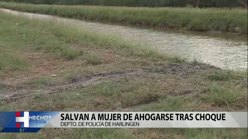En Harlingen los equipos de emergencia rescataron a una conductora cuyo auto, después de impactarse, cayó en un canal de agua cerca de la calle Morris y Rangerville.