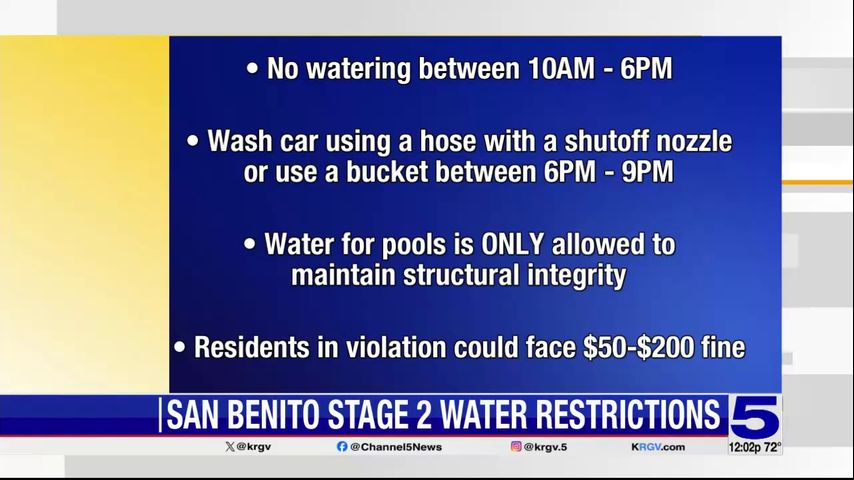The city of San Benito has announced water restrictions for residents.