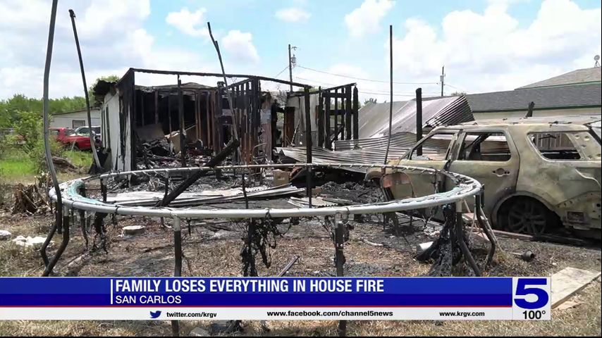 The Hidalgo County fire marshal says the fire started inside a vehicle in a car port and then spread to the home on Sunday night.