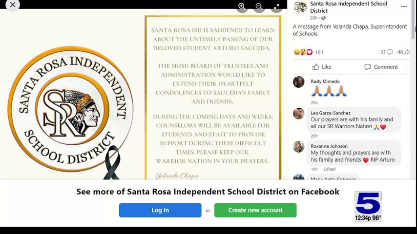 Santa Rosa ISD identified the student as Arturo Sauceda on their Facebook page.