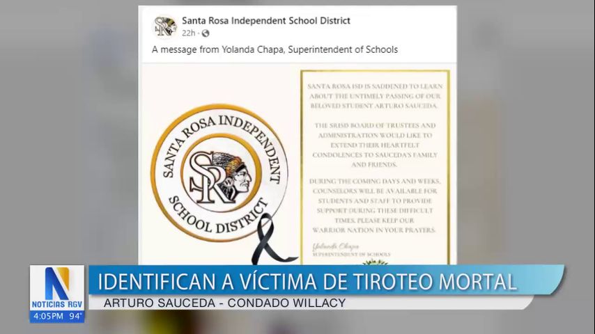 A través de una publicación en Facebook, Santa Rosa ISD identificó al estudiante como Arturo Sauceda.