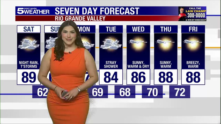 The First Warn 5 Weather Team said forecast models show dry conditions throughout Saturday but rain and a few storms could filer in as soon as Saturday evening in the upper Rio Grande Valley then become widespread overnight and throughout the day Sunday.