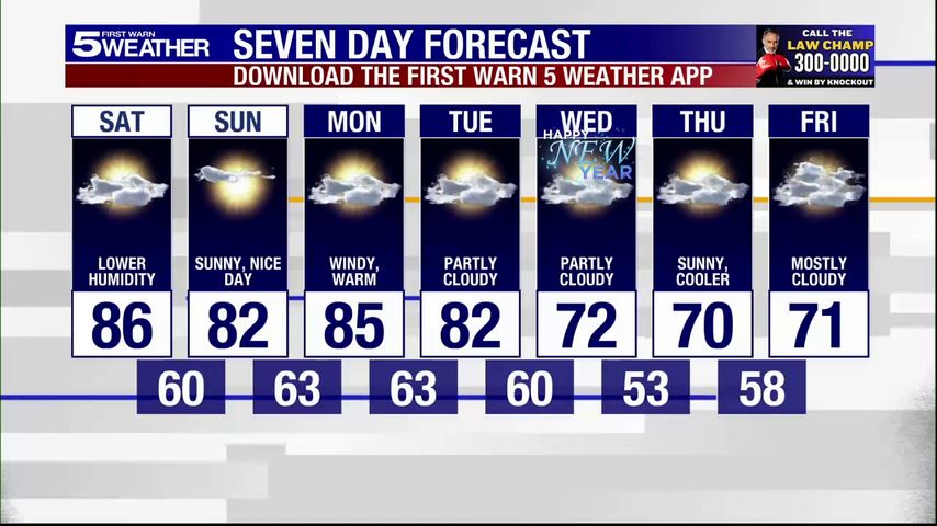Saturday, Dec. 28, 2024: Lower humidity, temps in the 80s