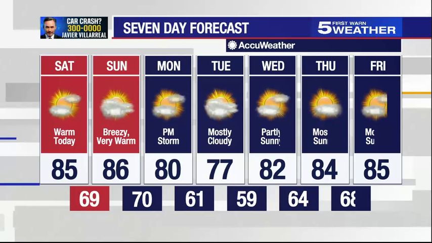 Saturday: Dec. 4, 2021: Warm day with temperatures in the mid-80s