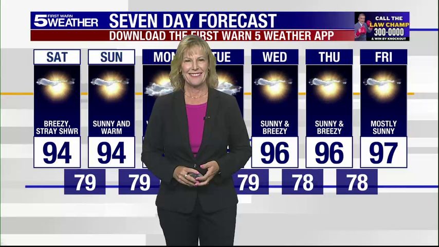 Saturday, July 12, 2025: Breezy, stray shower, temps in the 90s