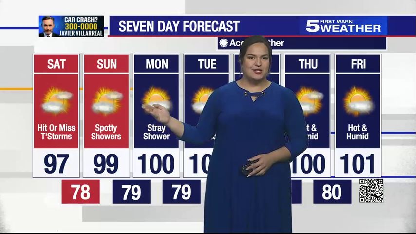 Saturday, July 29, 2023: Chance of thunderstorms with highs in the 90s