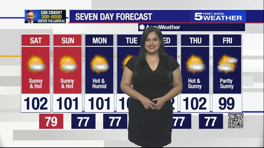 Saturday, June 24, 2023: Sunny and hot with highs of 102°F