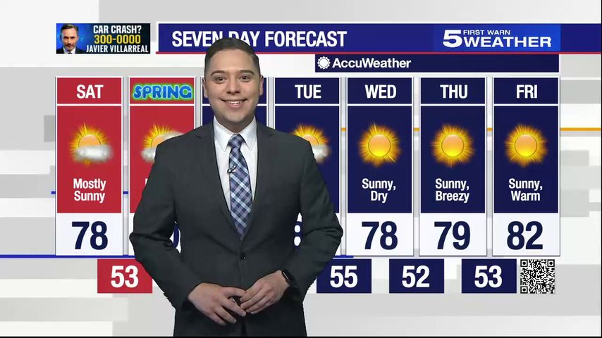 Saturday, March 19, 2022: Mostly sunny, temperatures in the 70s