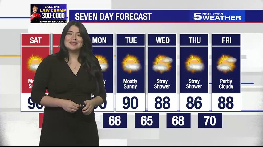 Saturday, Oct. 12, 2024: Mostly sunny, temps in the 90s