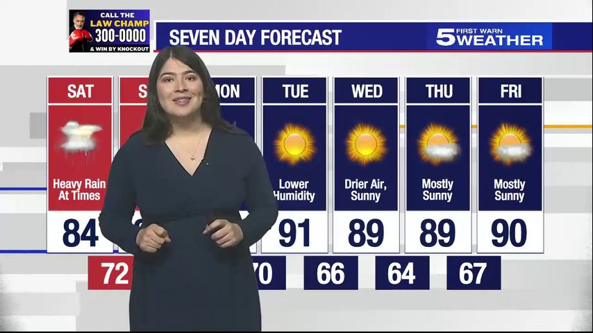 Saturday, Oct. 5, 2024: Heavy rain at times, temps in the 80s