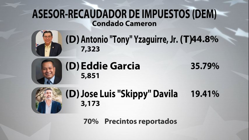 Casi de inmediato, cuando cerraron las casillas electorales a las 7 de la noche, los resultados no oficiales establecían un empate entre el titular de la oficina del asesor y recaudador de impuestos del condado Cameron Antonio Tony Yzaguirre y el candidato Eddie García.