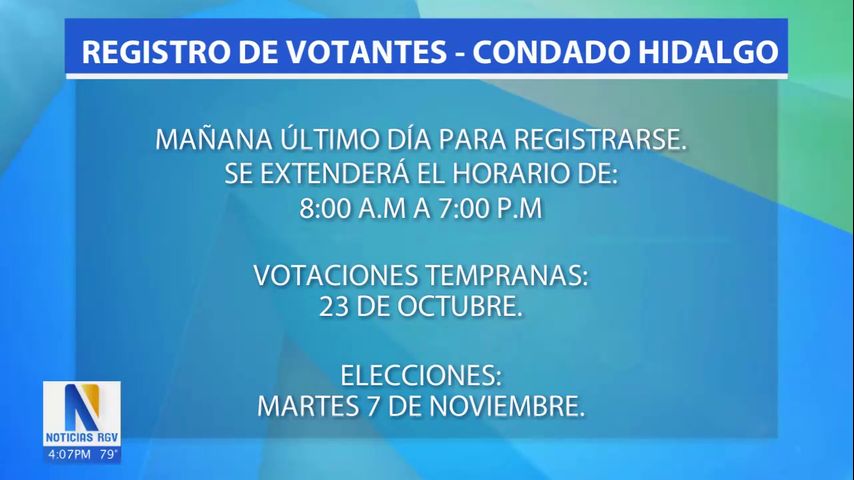 La Oficina Principal del Departamento de Elecciones del Condado de Hidalgo extenderá sus horas de trabajo para ayudar a los residentes a registrarse. Martes estarán abiertos desde las 8 a.m. hasta las 7 p.m.