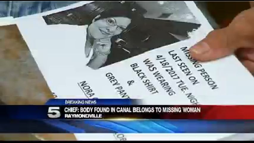 Uvaldo Zamora, jefe de la policía de Raymondville, confirmó a CHANNEL 5 NEWS que el cuerpo encontrado en un canal cerca del Lago Delta pertenece a Nora Conde Villalobos de 49 años. Ella ha estado desaparecida desde el 18 de abril.