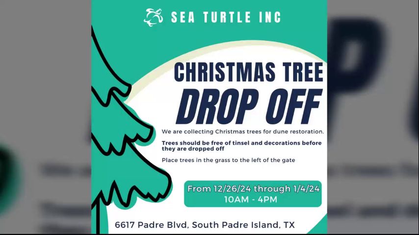 People can drop off their Christmas trees at Sea Turtle Inc., located at 6617 Padre Boulevard, in the grassy area next to their main gate. Signage will be posted to guide participants.