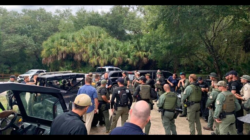NORTH PORT, Fla. (AP) — More than 50 law enforcement officers on Sunday started a second day of searching in a vast wildlife area near Florida's Gulf Coast for a 23-year-old man that authorities consider a person of interest in the disappearance of his girlfriend who went missing while on a cross-country trek.