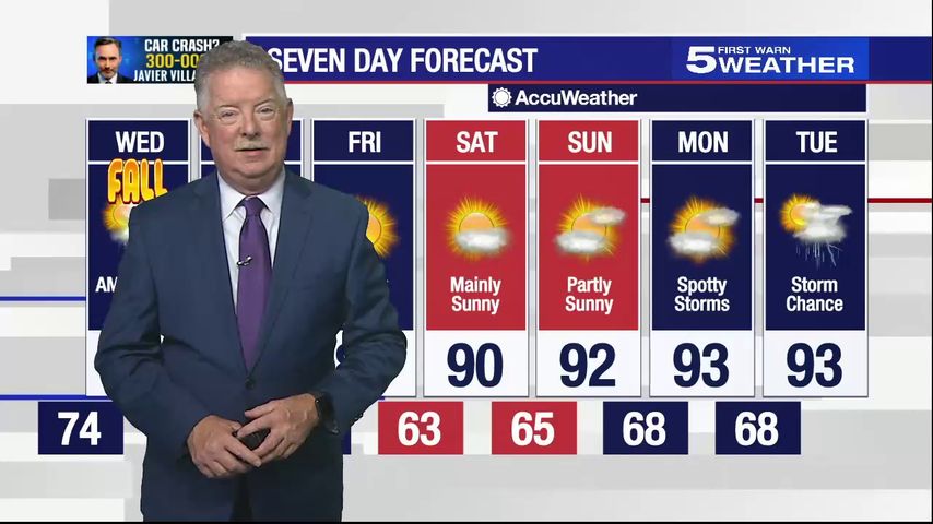 It won't be cold, but you will definitely feel the difference with highs Wednesday, Thursday and Friday mainly in the 80s - and nighttime lows in the 60s.