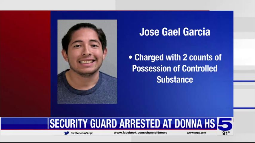 A security guard was arrested Tuesday at Donna High School after drugs were found in his vehicle, according to the Donna Independent School District.