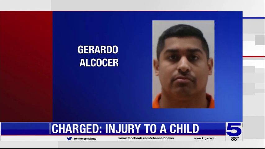 Gerardo Alcocer was arrested on charges of injury to a child, a news release stated.