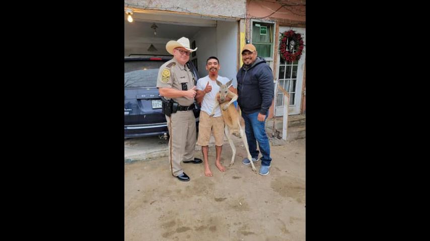 The kangaroo was spotted hopping down Highway 49 on Friday, and authorities have been looking for it since. On Saturday, deputies with the sheriff’s office found it at the 12000 Block of Apache Drive in Mercedes, about two miles from the ranch it belongs to, according to a news release.