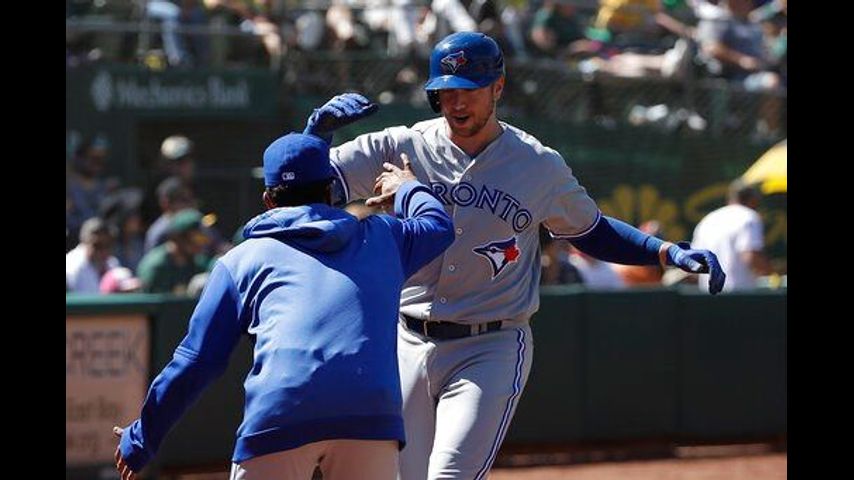 OAKLAND, Calif. (AP) - Justin Smoak got thrown out on a wild sequence that began with another sensational play by Oakland center fielder Ramon Laureano, but wound up with four hits as the Toronto Blue Jays beat the Athletics 5-4 Sunday for a three-game sweep.