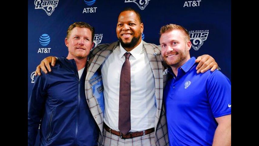 The Rams acquired defensive tackle Ndamukong Suh, cornerbacks Aqib Talib and Marcus Peters and edge rusher Dante Fowler to bolster their defense. They gave huge contracts to Gurley and Donald - and even to receiver Brandin Cooks, who had just been acquired from New England for a first-round pick and hadn't even suited up yet for Los Angeles.