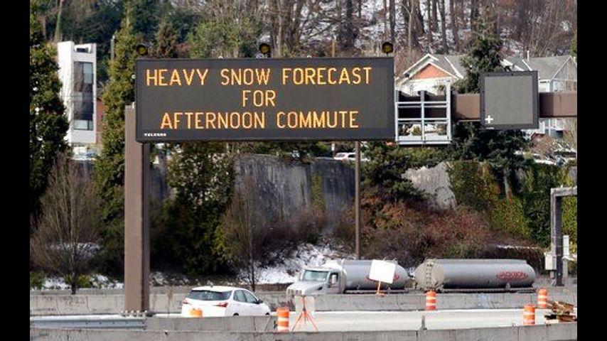 In Seattle, officials urged people to stay off the roads as traffic slowed to a standstill in some places because of the snow.
