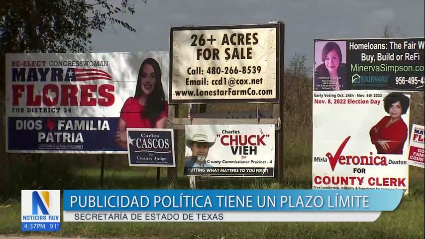 "En realidad, no es nuestra agencia, por decirlo así, el Departamento de Transporte de Texas tiene reglas sobre la eliminación de esa publicidad, por lo que tendrían que aceptarlas específicamente. Si está en un lugar público, entonces, hay una serie de regulaciones sobre cómo quitarlas. Creo que generalmente es aproximadamente un mes después", comentó Alicia Pierce, portavoz de la secretaria de estado de Texas.
