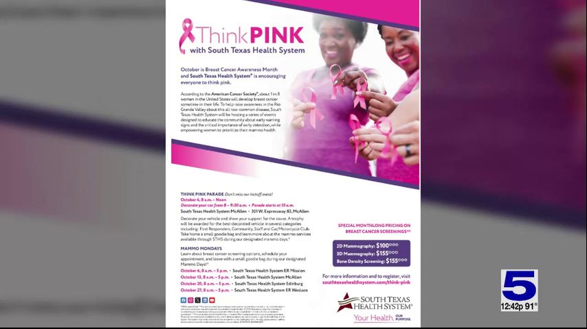 The first event is the Think Pink Parade, set for Saturday, Oct. 4 from 8 a.m. to noon at STHS McAllen, located at 301 W. Expressway 83.