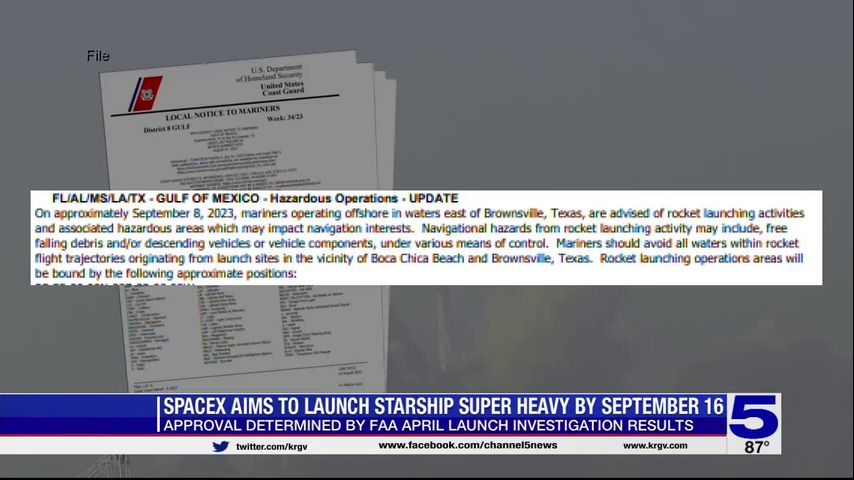 According to an updated notice from the U.S. Coast Guard, SpaceX may now try to launch the Starship super heavy rocket on Saturday, Sept. 16.