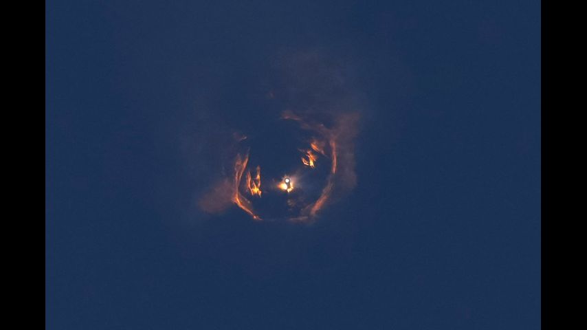 The 403-foot (123-meter) rocket blasted off from Texas. SpaceX caught the first-stage booster back at the pad with giant mechanical arms, but engines on the spacecraft on top started shutting down as it streaked eastward for what was supposed to be a controlled entry over the Indian Ocean, half a world away. Contact was lost less than 10 minutes into the flight as the spacecraft went into an out-of-control spin.