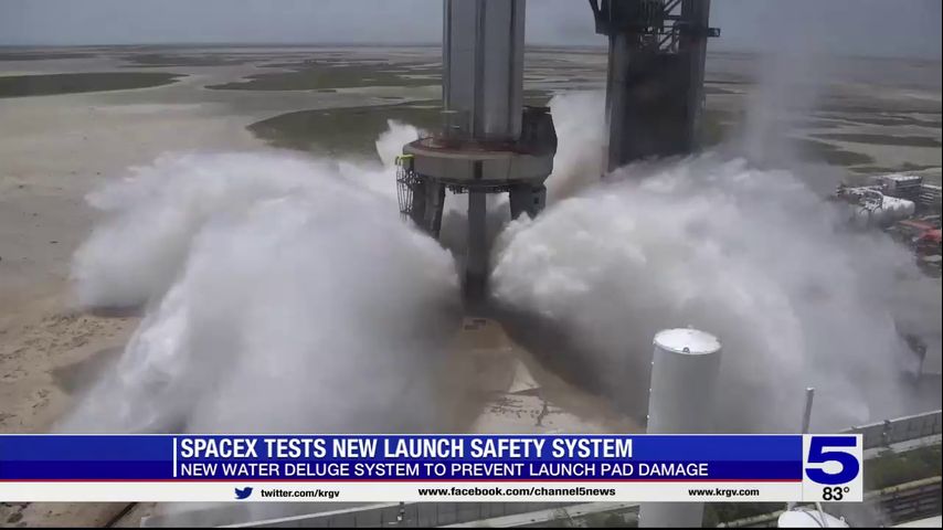 The flame detector system shoots out water from under their super-heavy Starship booster to prevent the next launch from destroying both the pad and ground directly underneath it.
