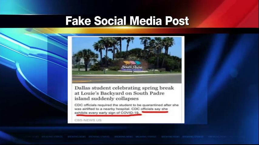 SOUTH PADRE ISLAND - City officials say an online post stating a spring breaker collapsed and showed signs of coronavirus are false.