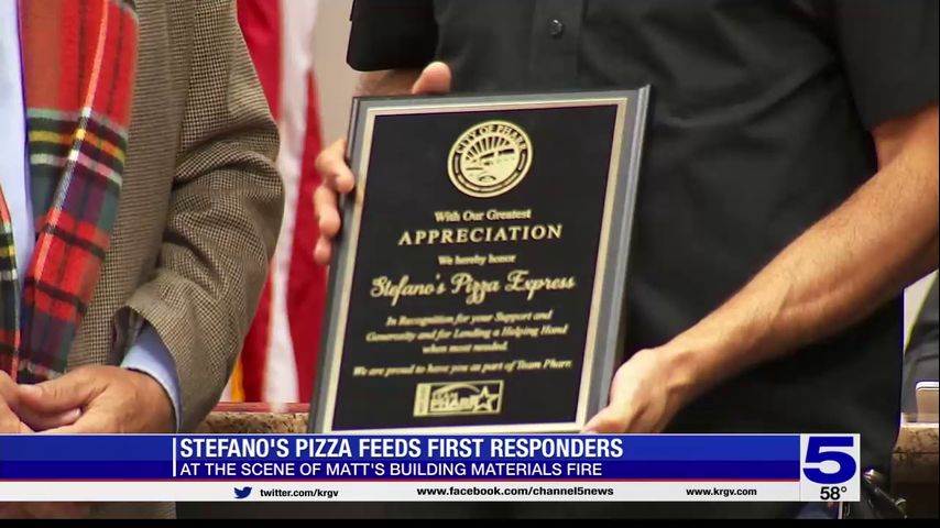 A Valley businessman was recognized by the city of Pharr after he stepped in to feed first responders at the scene of the Matt’s Cash and Carry fire.